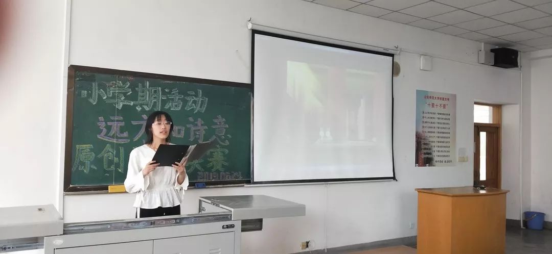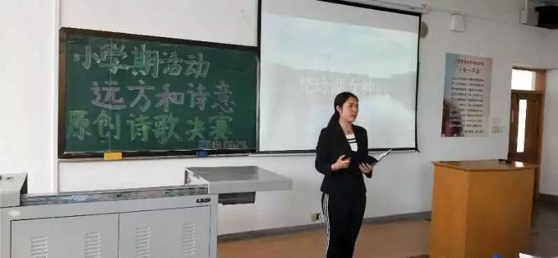 比赛开始之前,柳杨老师首先向大家阐释了本次诗歌原创大赛的初衷,并借此次比赛为契机,鼓励大家坚持对诗歌的热爱,在诗歌创作的道路上越走越远。接着张冬梅教授也讲述了她对诗歌的理解与看法,从生命、诗歌旋律、历史感等五个方面入手让我们对诗歌创作有了更深层的理解。
