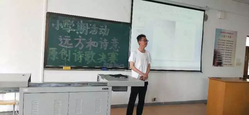 听完各位选手的诗歌,陈新义老师对同学们的诗歌进行了精彩的点评,陈老师表扬了同学们的诗歌作品,也针对同学们在创作中的青涩与不足提出了宝贵意见。最后,张维阳副经理也对本次活动进行了总结,张维阳副经理对同学们对诗歌创作大赛的热情表示了充分的肯定,他鼓励同学们不要止步于学院、学校的比赛,要更多参加省级国家级的比赛,同时坚持自我,不要拘泥于成绩。